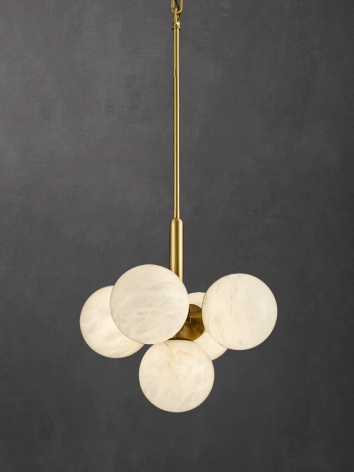 Transform your interior with the captivating beauty of this modern luxury pendant light. Handcrafted with exquisite materials, this fixture features a minimalist design that is both elegant and understated. The Spanish-inspired aesthetic is enhanced by the use of genuine alabaster, which casts a warm and inviting glow, and a carefully selected marble ball accent, adding a touch of sophistication.