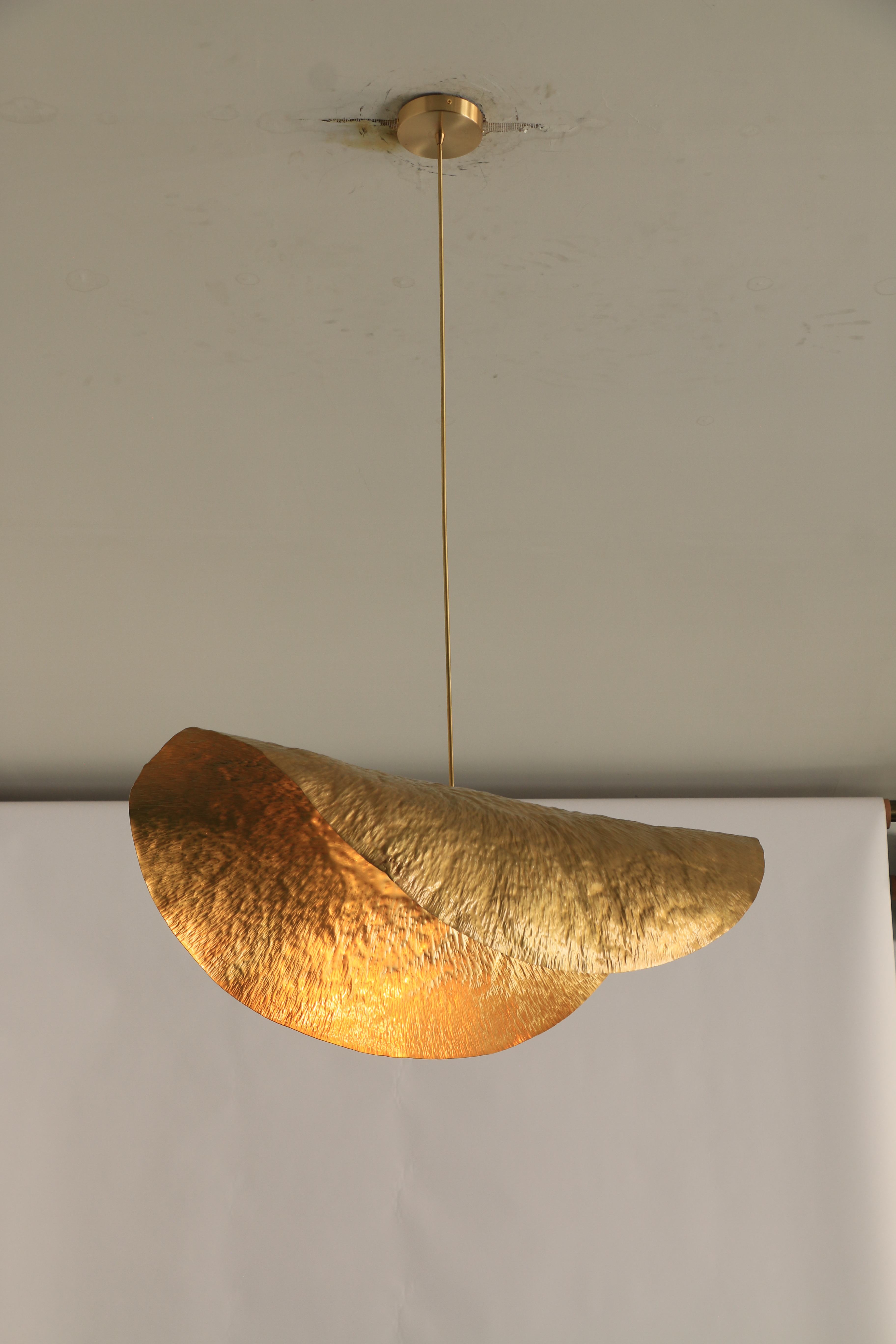 Διαθέσιμο σε όλα τα χρυσαφένια φινίρισμα χαλκού ή χαλκού, αυτό το λυχνάρι λάμπα εκπέμπει μια μεταμοντέρνα αίσθηση πολυτέλειας, ιδανική για βίλες, καθιστικά ή τραπεζαρίες.Η μοναδική σχεδίαση φύλλου λωτού προσθέτει κομψότητα και δημιουργικότητα σε οποιοδήποτε χώρο.