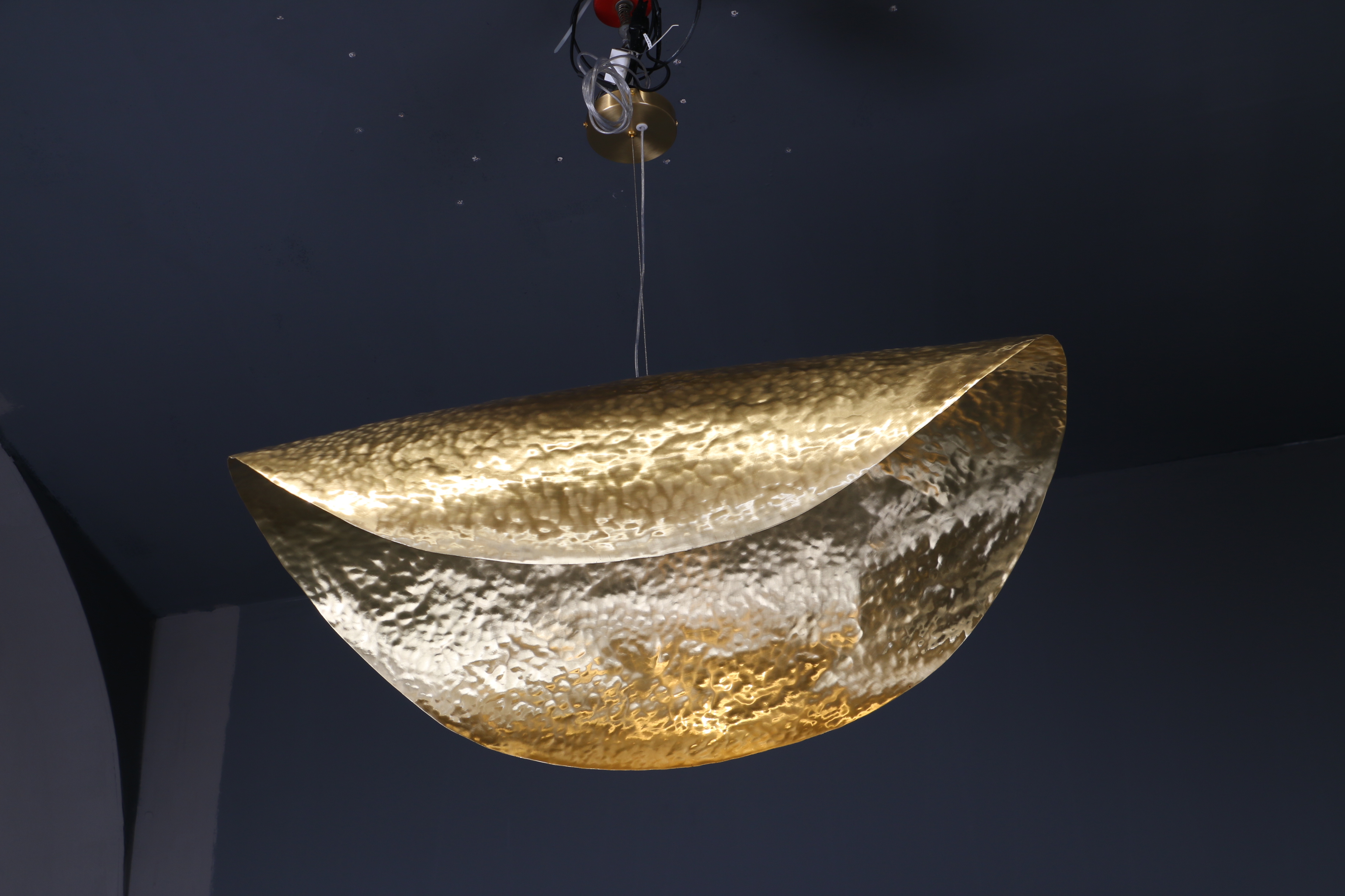 Διαθέσιμο σε όλα τα χρυσαφένια φινίρισμα χαλκού ή χαλκού, εκπέμπει μια μεταμοντέρνα αίσθηση πολυτέλειας, ιδανική για βίλες, σαλόνια ή τραπεζαρίες.